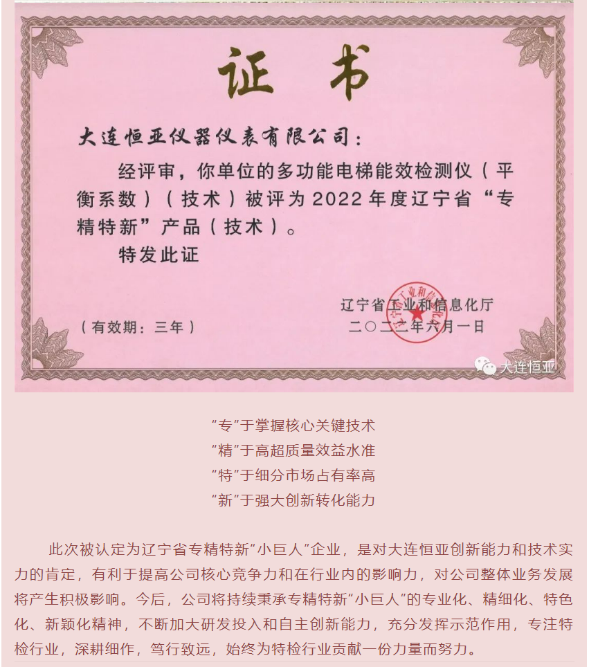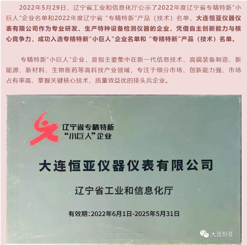 大連恒亞榮獲“遼寧省專精特新小巨人企業(yè)”認定