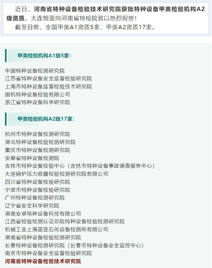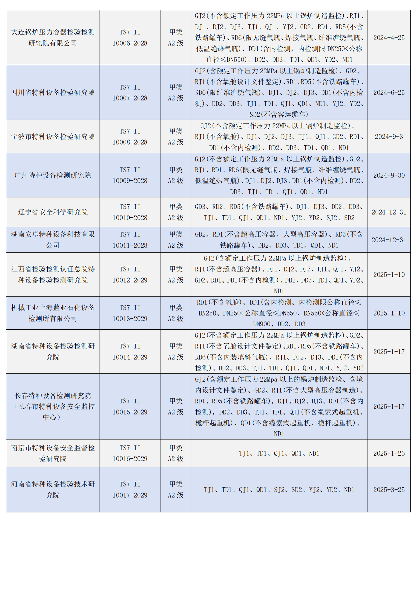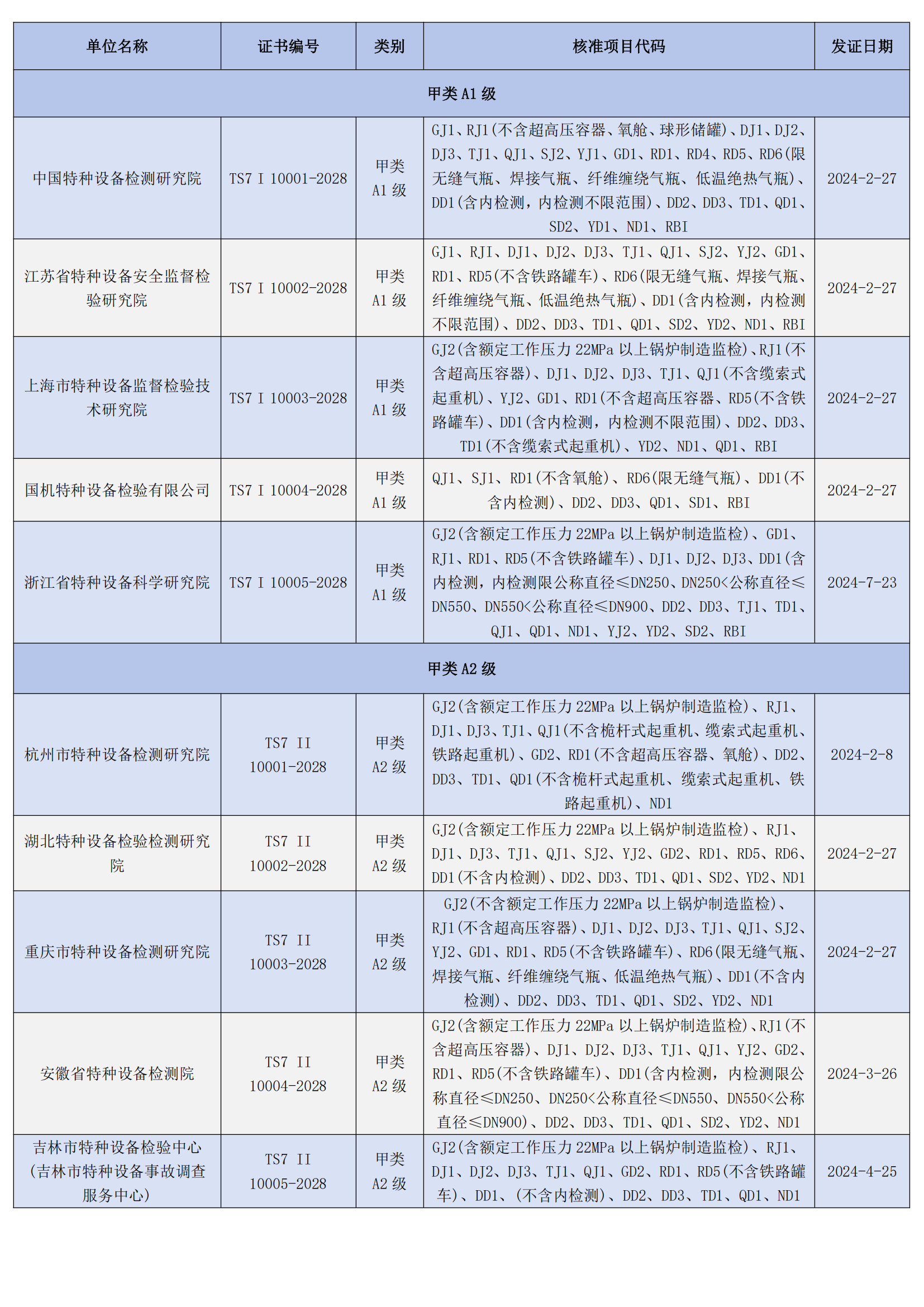 全國(guó)甲類A1和A2級(jí)特檢機(jī)構(gòu)名錄及核準(zhǔn)項(xiàng)目